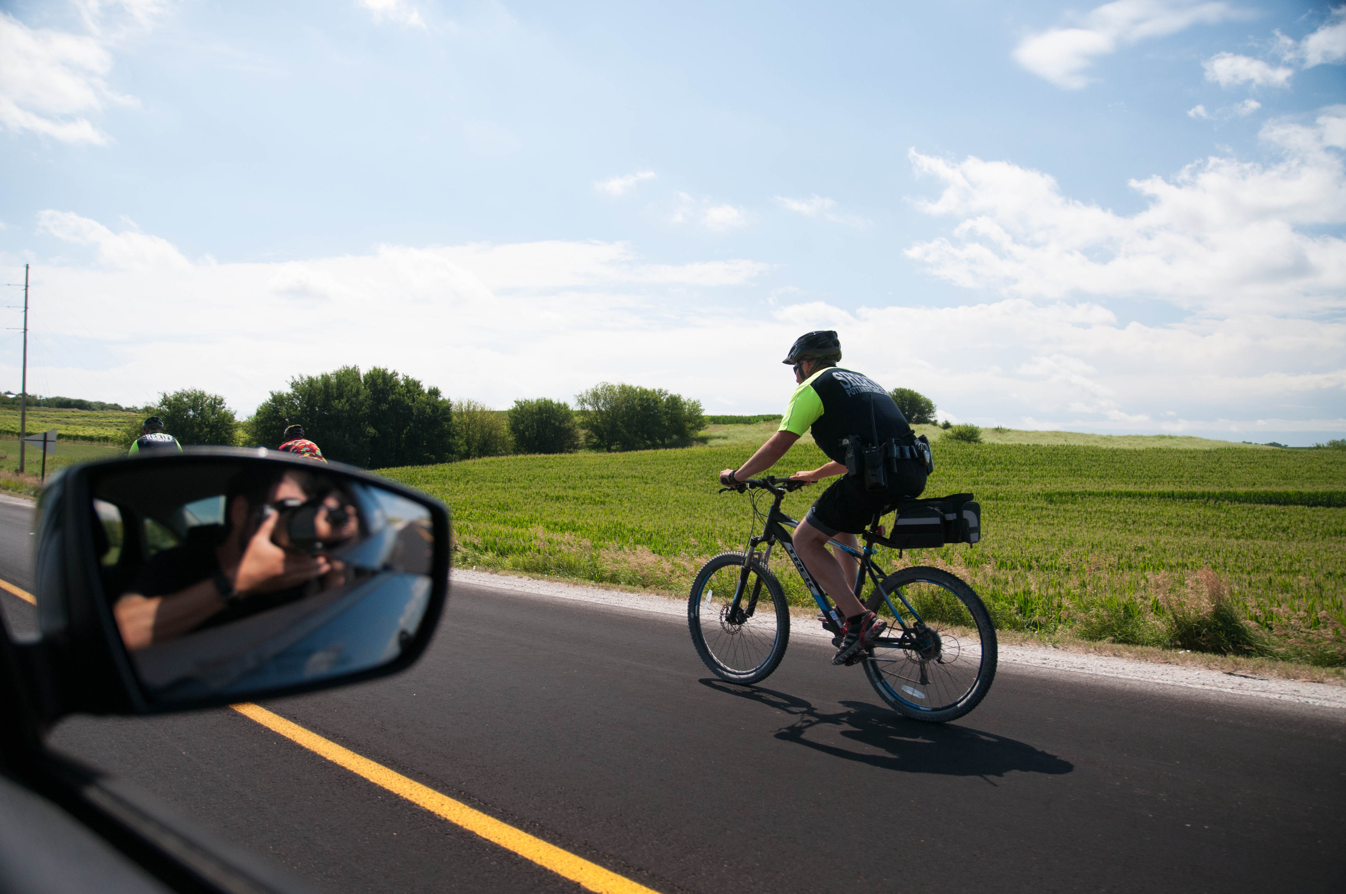 I can’t really express with words how I feel about RAGBRAI. The experience was completely overwhelming on almost every level. Yet as it was coming to a close I found myself in a sort of mourning for not wanting it to end. The days were grueling. 16 hour days filled with a morning meeting at breakfast, shooting on the road, shooting at the tents shooting in he towns and then transferring by car to our next stop. Stop for a minute or two to inhale dinner, then shot review and filing until midnight or 1:00 am most nights. I’d get no more than 4 or 5 hours of sleep a night yet wake up ready to go to work the next day. I met a thousand interesting people all of which had incredible stories about their journeys both at RAGBRAI and in life but I can only remember a handful. I kept telling myself to swing for the fences with every frame, that this was make or break time due to who would be publishing the work. Not every frame was gold, but a few where, and I proved to myself that I’m not a static artist. I stepped far outside myself and my style for this project and now I’m invigorated. I feel like that naive teenager who thinks he can do everything, and that there’s nothing to stop him… Probably because that is in fact, the truth.