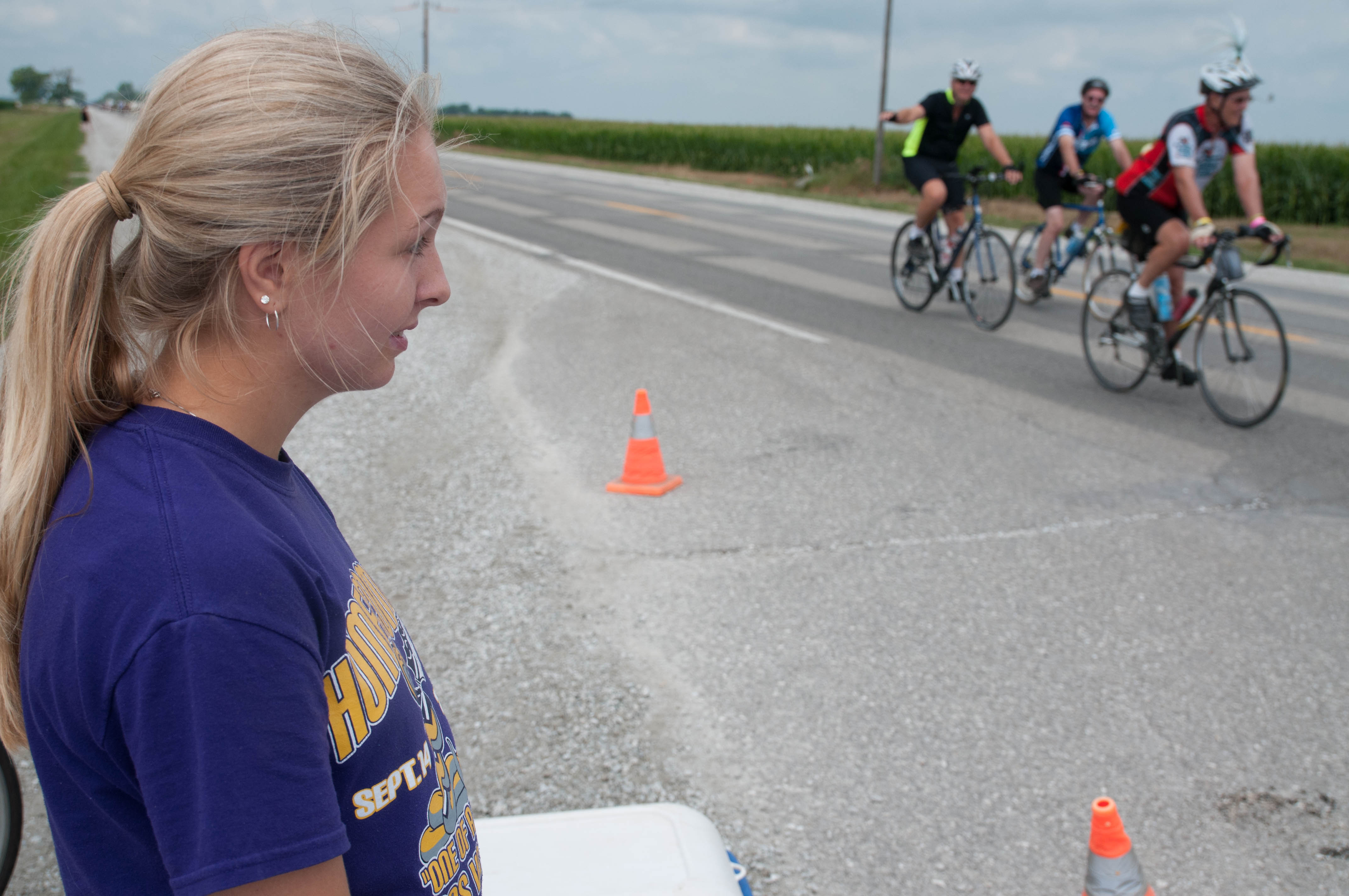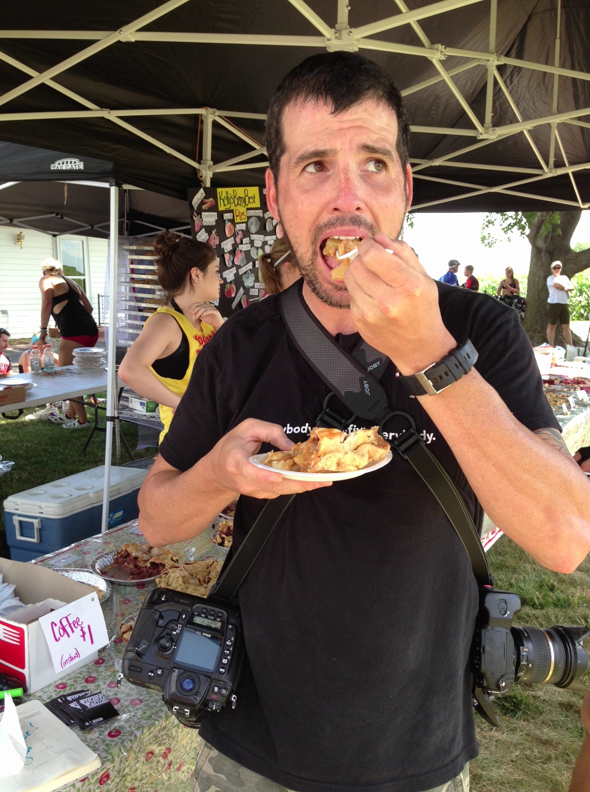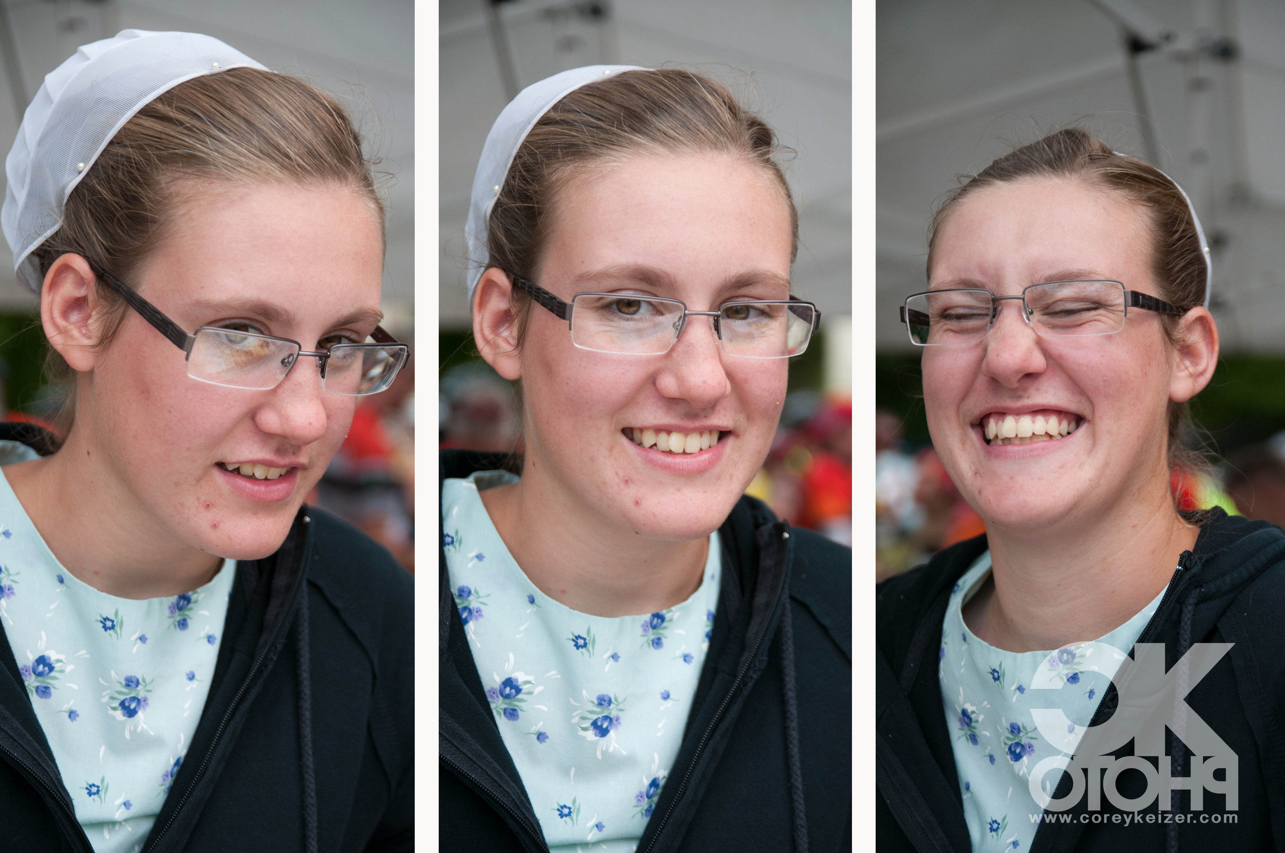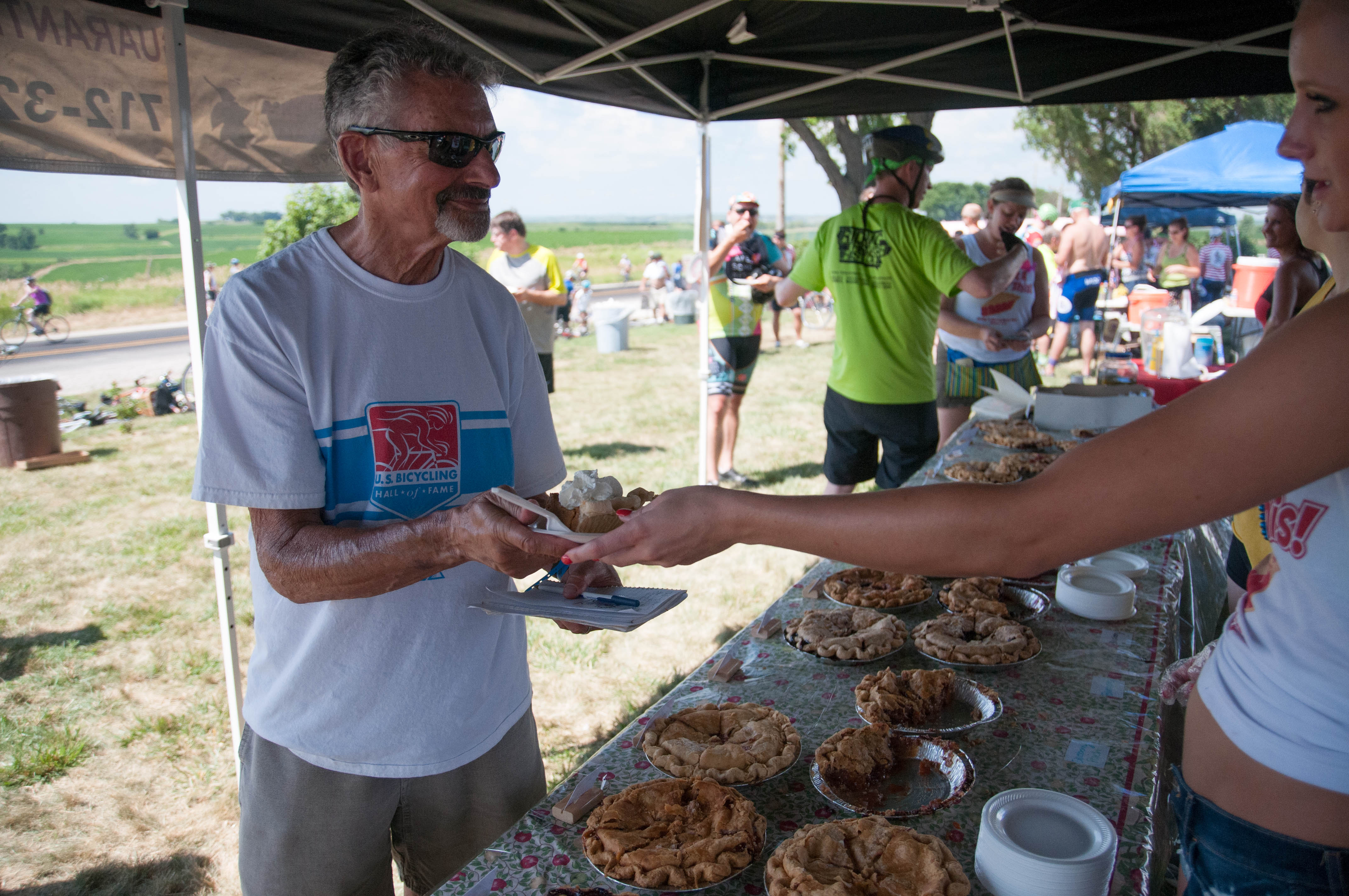 The culture clash was pretty amazing. From a distance RAGBRAI looked like a high-viz fabric manufacturers factory had exploded all over some lightly traveled country roads, and then you had the locals. I saw Amanda and followed her through the crowded streets of Dallas Center back to her family’s pie stand. Clearly she wasn’t used to having a camera in her face, as every time she looked up to see me taking her picture she’d start laughing.